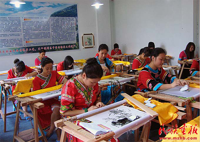 李紹玉在培訓班免費教人刺繡,也走鄉串戶到苗寨,帶動了一大批合作的繡娘