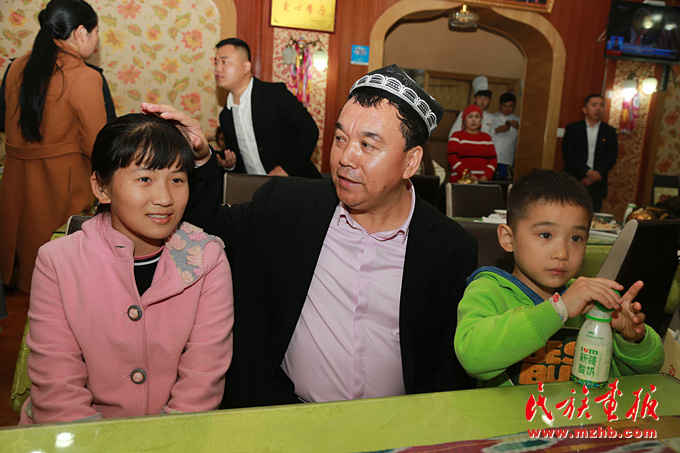 鄭州市二七區新疆美食城店主阿地力·買買提熱心公益事業,他已承諾幫助漢族學生徐文婷11歲(左) 等5人直到大學畢業