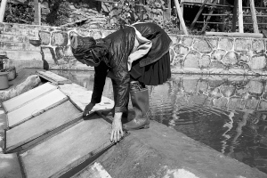 占里村共有182戶827人,這里的侗族古法造紙術源遠流長,全村從事造紙業的就有170戶,占總戶數的93%。這里的造紙業依然保留著原始的家庭作坊和世代傳承的手工制作方式。這種古法造紙技藝以構樹皮為原材料,添加獼猴桃藤、野棉花根,經過水浸泡、石灰腌制、蒸煮、碓爛、攤曬、燒堿漂白、打漿、瀝水、抄紙、烤干等72道工序,最終制成白皮紙。
