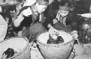 農歷臘月初四是黎家人認定的兔日,吉利的日子。海南省保亭響水鎮合口管區什棟村的女青年陳銀蕾和離該村不遠的什 村男青年吉永權就選這天結為百年之好。他們經過了自由戀愛,一切均按照黎族風俗提親、定婚、舉行婚禮。