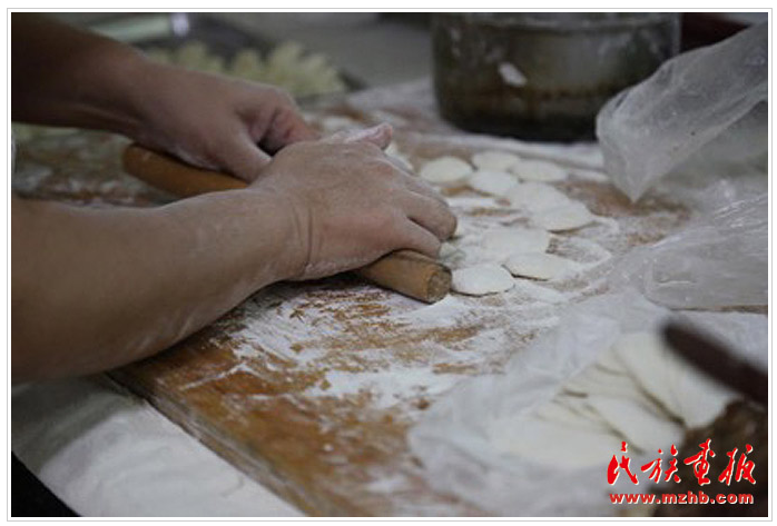 后廚忙碌的回族員工精心準(zhǔn)備著食材