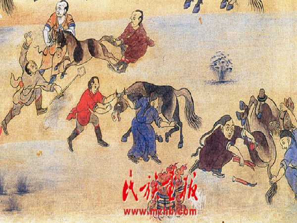 放牧遠行,馬是重要的交通工具;嫁娶新人,要以駿馬為坐騎;宗教神話中,馬是神的代言者;草原盛會,賽馬是必不可少的內容;在蒙古族民間傳說和歌謠中,對馬的贊頌更是比比皆是。馬是蒙古人日常生活最親密的伙伴,蒙古人有特別濃厚的戀馬情結,這就是我們說的“馬文化”現象。蒙古族的馬文化是在長期生產生活中逐漸形成、演化、發展而來的。曾是軍事、交通運輸、農業生產等活動的主要動力。