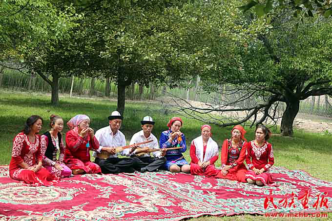 據(jù)色帕巴依鄉(xiāng)黨委委員阿依木古麗·艾山卡德介紹,該鄉(xiāng)在鄉(xiāng)中心小學專門開設課程教學生學彈庫姆孜琴,并積極舉辦“我為庫姆孜代言”活動,積極培養(yǎng)庫姆孜傳承人。此外,鄉(xiāng)里還專門組建有庫姆孜彈唱隊。“我們利用百日文化廣場和日常的演出走村串巷,積極參加縣宣傳部開展的各項文體活動。今年2月開展的群眾大會,把庫姆孜音樂重新填詞,配合惠民政策宣傳,將傳播民族文化與群眾思想政治工作相結合。”同樣,在烏恰縣吾合沙魯鄉(xiāng)恰提村,當?shù)伛v村工作隊積極組織20名返鄉(xiāng)學生開辦“庫姆孜彈唱文藝培訓班”,廣泛調動返鄉(xiāng)大學生加入到文化傳承的行列中。