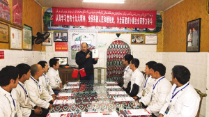 工作組工作人員向新疆籍務工人員宣講黨的十九大精神。 陳金橋攝