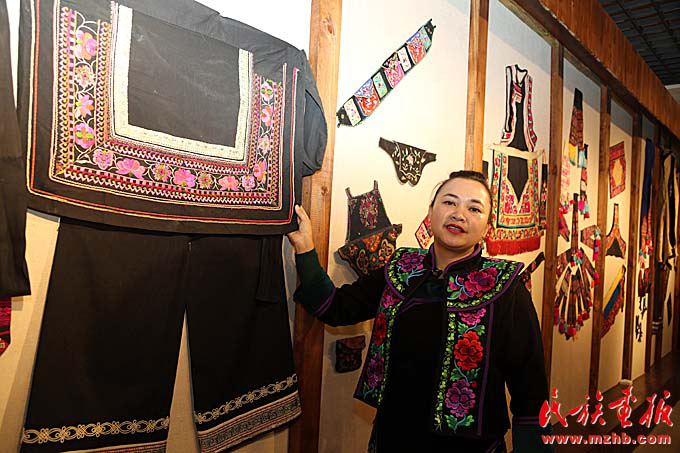 墻上的刺繡物品均是李長征從各地收集來的,最久的飾物距今有200多年歷史(民族畫報曾穎 攝影)