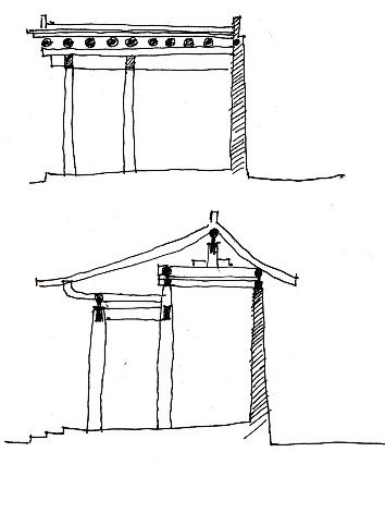 土坯墻建筑的建筑結構主要是土坯墻和木制的柱子承重,還有一種是土坯墻和抬梁架一起承重,最后一種是土坯墻承重。土坯墻受限于自身的材料和工藝問題,所以建筑進深一般情況下較小。