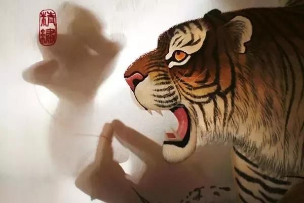 本幅繡品首次成功地將人物肖像圖方式引入傳統走獸刺繡之中。作者用細膩的針法細致精準地繡出了老虎根根可辨的絨毛和少女光滑細膩的皮膚,形成極大的反差,極具視覺沖擊力。