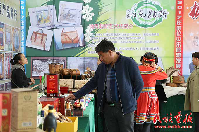 呼倫貝爾市旅游發展大會上,民族特色產品受到游客的歡迎