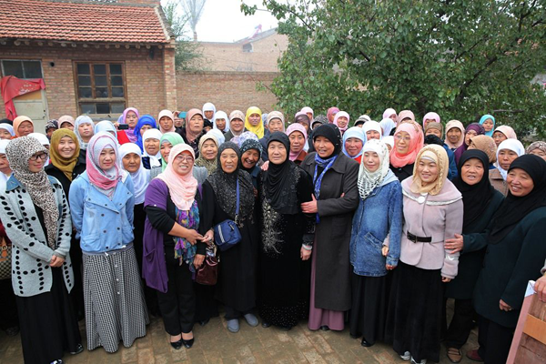 巍山回族婦女的頭巾色彩豐富,赤、橙、黃、綠、青、藍、紫,各種顏色齊全,款式多樣,面料眾多,大多為正方形絲巾。還有一種梯形套巾,這種頭巾戴時很方便,年紀大的回族婦女和很小的女童常戴。其頭巾選用絲、綢、喬、紗、滌綸等高中檔細料制作,并繡有各種花草圖案,布料須輕盈、飄逸。尺寸有大有小,有成人、兒童之分?;刈鍕D女服飾有大長衫、二長衫、巴服。大長衫多用深色凈色布料配以繡花,二長衫多用碎花淺色布料,款式多變化,巴服款式大致一樣,色調各異。