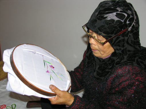 刺繡花草圖案和幾何圖形,是回族婦女刺繡的絕技。如枕頭、坎肩、掛圖、圍裙等處繡的花卉,形象非常逼真。有些刺繡作品,很注意變化裝飾,給人以整體美。她們往往擷取大自然中各種不同的植物葉,構(gòu)成自己想象中的花草樹木,技與葉、花與蔓和諧地統(tǒng)一。回族婦女刺繡技藝,既富有生活特色,又充滿美好愿景。