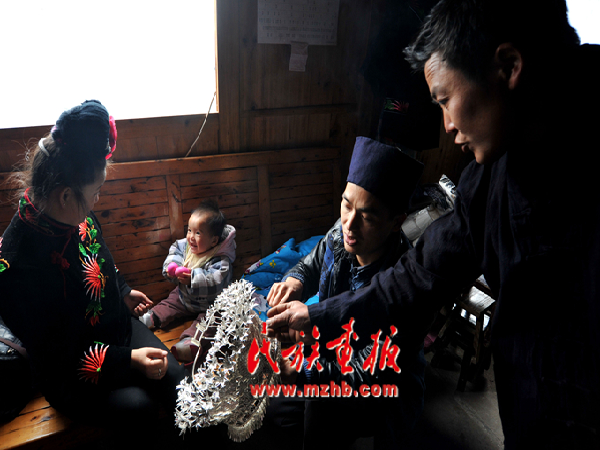1975年出生的龍太陽,是控拜銀匠村目前唯一一個留守村寨的苗族銀匠。他堅守在村里打銀飾,種田地,照顧妻兒老小。他說,我想讓外出的銀匠看到,在家里種田地,贍養老人,打銀飾,也能致富,也能過上好日子。