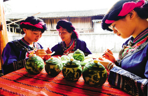 在貴州省天柱縣地湖鄉(xiāng)永光村,苗族姑娘們聚在一起學(xué)習(xí)蜜餞雕刻技術(shù),爭當技藝傳承人。