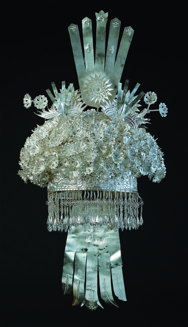 銀飾是苗族服飾文化的重要組成部分,也是苗族貴金屬傳統手工藝發展水平的集中體現。苗族銀飾以其多樣的品種、奇美的造型和精巧的工藝,向人們呈現了一個瑰麗多彩的藝術世界,展示著一個有著豐富內涵的精神世界。
