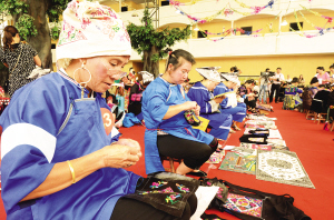 經過層層選拔出的100名繡娘在此飛針走線,同秀技藝,展現了少數民族民間文化獨特的藝術魅力。