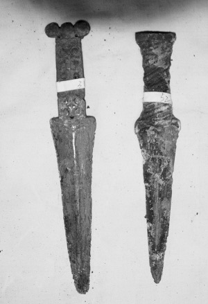 2006年,涼山州文化局請(qǐng)文物專(zhuān)家鑒定了公安機(jī)關(guān)收繳的鹽源文物,鑒定現(xiàn)場(chǎng)有3把雙環(huán)首青銅短劍。其中一把青銅短劍長(zhǎng)27厘米,一把長(zhǎng)27.5厘米,還有一把26厘米,均為戰(zhàn)國(guó)至漢代時(shí)期文物。