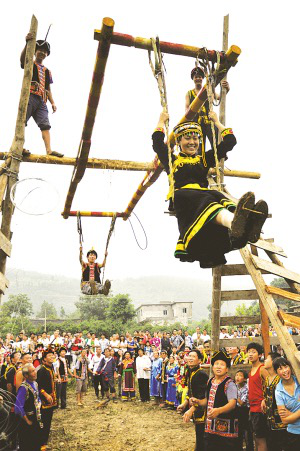 彝族同胞在火把節上蕩起“觀音秋”劉傳福攝