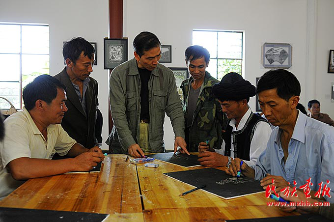為了提升作品質量,阿峨新寨村的版畫創作者邀請專家對其進行藝術指導