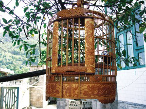 選材和傳統(tǒng)工藝是布依族鳥籠制作的兩大關(guān)鍵環(huán)節(jié)。最好的用材是優(yōu)質(zhì)畫眉竹、毛竹和青竹。竹材的采伐時間,有嚴格的要求,一般是在每年的秋收以后到第二年的正月間最為合適。其它時間采伐的竹材水性重,易蛀蟲。至于竹材,則以生長5到7年的竹子最為理想。這種年齡的竹料柔韌、堅硬、鮮亮。布依族鳥籠全由精雕細鏤的各式竹節(jié)(條)組合而成,構(gòu)成部件做工精細。雕飾分花、素兩款,樣式有方、圓兩類。雕花鳥籠,從取材到最后組裝完成,需10天左右。鳥籠雕刻圖飾有“雙鳳朝陽”、“二龍戲珠”和“蝴蝶結(jié)”等等。