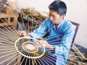 布依族鳥籠制作技藝傳承人黃廷峰在制作鳥籠