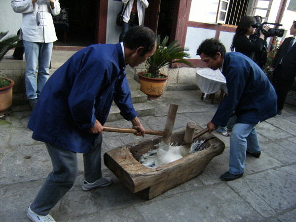 貴陽烏當區偏坡布依寨村民做打糕 老鐵供圖