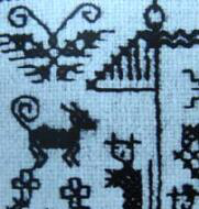挑花(又叫十字挑花)是滿族民間刺繡中廣為流傳的一種針法。用交叉的十字組成抽象的圖案,粗獷簡潔,是人們日常生活用品中的主要裝飾圖案,色彩比較單一,后來發展為復雜的十字繡。
