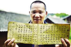 圖為仁吉侗寨村民吳昌賢在展示祖輩流傳下來的古老蘆笙曲譜。 吳國楨 攝影報(bào)道