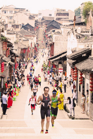此次活動最大的亮點是傳統古老的“非遺”文化和劃騎跑三項挑戰賽緊密結合,充分利用黎平生態資源設置比賽線路。比賽全程131.5公里,途經德鳳、高屯、巖洞、茅貢、壩寨等5個鄉鎮(街道)。兩天時間內,選手們穿行在黎平最亮麗的精品旅游示范區域——“百里侗寨”文化體驗走廊,穿越古木參天的森林,探秘古樸神奇的侗寨,感受清新秀麗的茶園,經過滿載美妙愛情故事的風雨橋,逐浪于綠如翡翠的三什江,奔跑在侗家如詩如畫的田野間,路過桂花臺、五里橋、東風林場等多個著名景點,在侗鄉黎平的多情山水和旖旎風光中追尋健康、快樂。身著民族服裝的侗族姑娘、小伙兒,在賽事最精彩的發令、節點交接、終點沖刺階段各個環節都唱起侗族大歌助興,“掠過古夢邊緣的旋律”讓這項國際性的現代化賽事洋溢著濃濃的“中國風”。