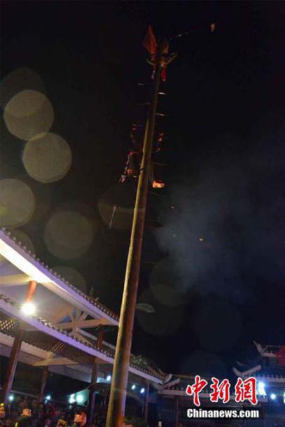 12月6日夜晚,在廣西金秀瑤族自治縣,瑤族百姓