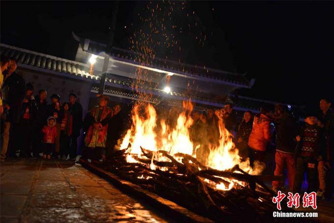 12月6日夜晚,在中國瑤族之鄉廣西金秀瑤族自治縣瑤族百姓在盤王節上,展現當地瑤族民間絕技——下火海