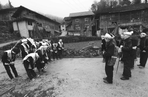 懷著對“度戒”的好奇和向往,從1月1日開始,盤文儀和其他 “受戒者”一道經歷了起法名、請師傅、豎刀梯等十多天的緊張準備。之后,在師傅的帶領下,連續三天三夜馬不停蹄地進行了封齋、架龍門、掛神像、接香、接圣、請圣、點大羅明燈、游兵等儀式。同時,通過聽師傅頌讀經文,接受了族史、族規、禮儀、道德等傳統教儀,還經歷了上刀梯、抓燒紅的犁頭、踩燒紅的磚頭等考驗,最終成功過關。
