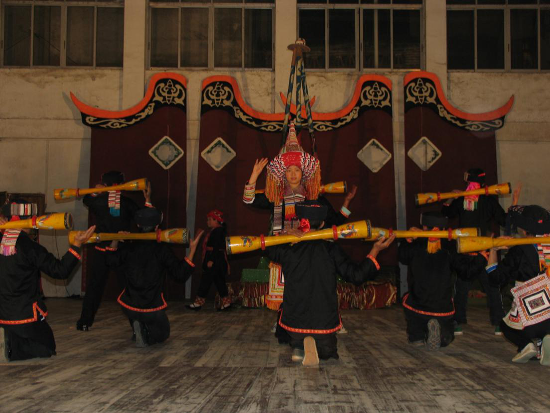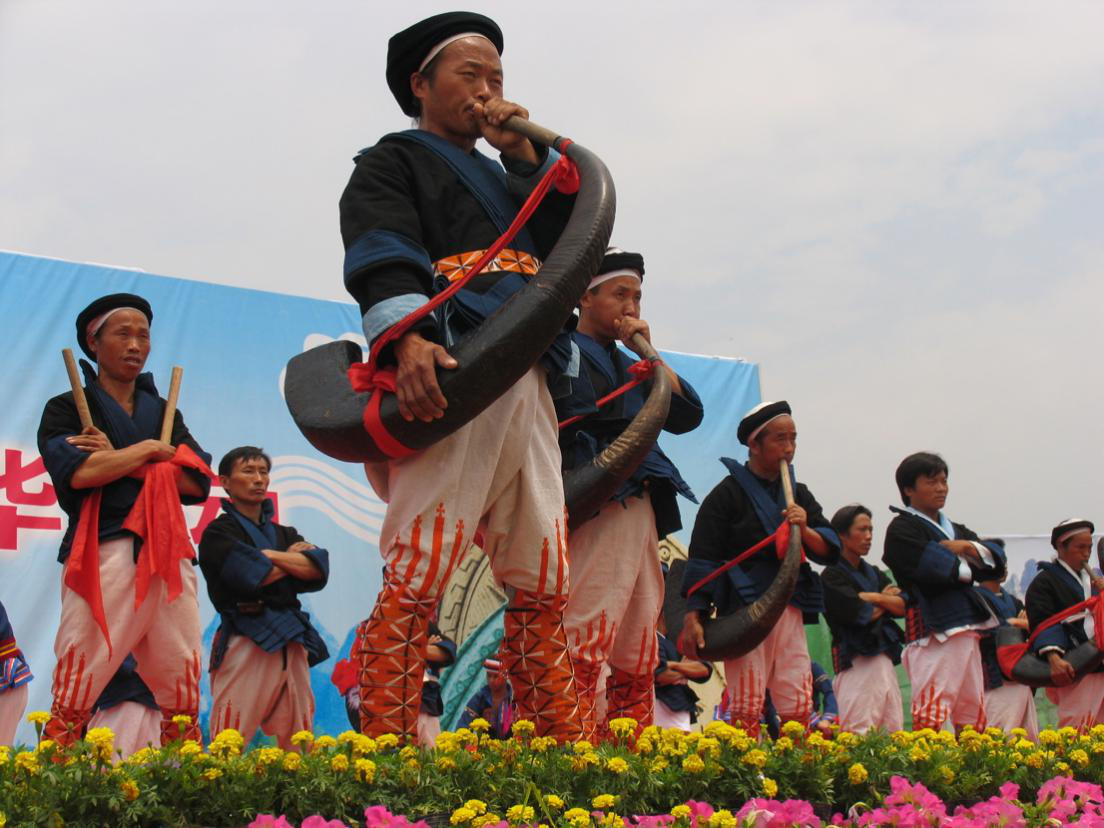瑤族人民在節日慶典活動上用民族樂器演出(劉軍攝)