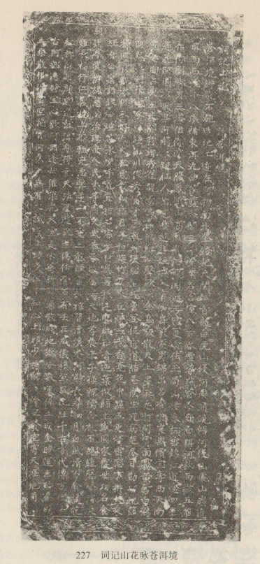白文碑刻。明楊黼作。景泰元年(1450年)立,原嵌于大理縣作邑鄉慶洞莊圣元寺偏殿前廳北壁,后移至大理縣文化館。碑文14行,陰文正體,從右到左直行書寫。首行為題,其余正文,共13行,每行40字,只第9行41字,末行39字。全詩20節,每兩節為一聯,共10聯。前4聯詠蒼山洱海的自然景色和地勢名勝,后6聯抒作者之情感。以白語吟誦,優美動聽。這是目前保存最為完好的一塊白文碑。傅懋勣、肖雷南在40年代曾根據郭純仁的讀音注解此碑,有油印本。石鐘健、楊燦然、徐嘉瑞亦對此碑加以研究。1957年,徐琳、趙衍蓀以郭純仁讀音為本,用國際音標記音,并加翻譯。《民族語文》1 980年第3期載有釋讀文章。