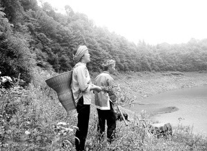 記得小時(shí)候有一回上學(xué),我在“之”字形的山道上遇到一撥“背腳佬”。只見他們那布滿蚯蚓般青筋的腿肚顫抖著,手中鑲著鐵釘?shù)拇蜩圃谑迓飞隙‘?dāng)?shù)貫R出火星,草鞋里的雙腳踏著堅(jiān)實(shí)的土地。每當(dāng)轉(zhuǎn)過(guò)一個(gè)彎,他們就一邊把打杵支在背簍下面,一邊發(fā)出“哎——喲嗬——”的吼聲。抹下一串汗珠,疲勞仿佛也被扔下山,引起陣陣回響。不知是誰(shuí)還吼起了粗獷的山歌:“郎在高山打傘來(lái),姐在房中做花鞋,雙手接過(guò)郎的傘,用手把姐抱在懷……”