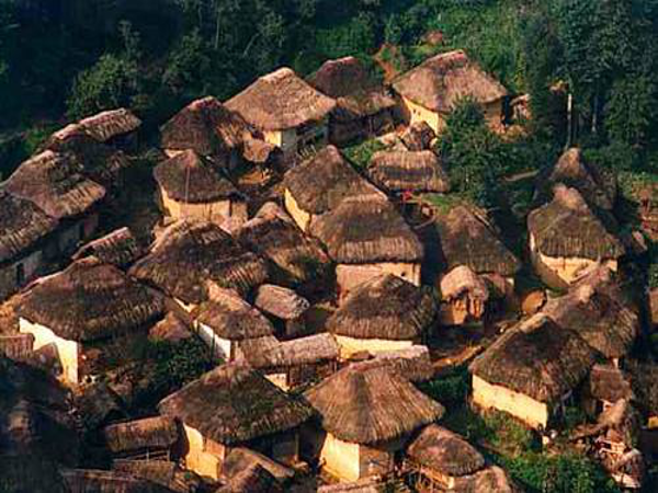 哈尼族一般居住在向陽的山腰,依傍山勢建立村寨。村寨一般為三四十戶,多至數百戶。