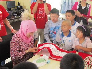 在民俗技藝的傳承方面,有條件的哈薩克族家庭能夠教孩子彈冬不拉,唱民歌,學習舞蹈和做手工藝。當地學校也會在音樂、美術課上教授相關的技能。串珠刺繡是哈薩克族的傳統技藝,制作一幅完整的串珠刺繡作品需要很長時間,這就為技藝的傳承增加了難度。當地很多哈薩克族婦女都懂得這門技藝,但孩子們受到這方面的教育卻并不多。