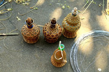 傣族竹編歷史悠久,制作精美,品種豐富,它與傣族人家生活息息相關(guān),是了解傣族文化不能缺少的一部分。對于傣族竹編來講,以編織工藝不同,可以把傣族竹編分為薄篾層編織出平面圖形的平面竹編;用橫截面為矩形的竹絲編織立體造型的立體竹編;將平面竹編和立體竹編編織工藝糅合在一起,編制成既有平面質(zhì)感又有立體形狀的混合竹編。傣族竹編是藝術(shù)創(chuàng)作和藝術(shù)再創(chuàng)作,竹編工藝品可分為粗絲工藝品和細(xì)絲工藝品。粗絲竹編工藝品主要有茶杯、糖缸、飯盒、檳榔盒、茶葉罐等,細(xì)絲竹編工藝品主要有竹包手袋、挎包和帽子等,它們集實用和觀賞性于一體。例如傣族的“芭蘿”,“芭蘿”是傣族,是一種掛在腰間的竹簍。“芭蘿”編織精巧,美觀實用,不僅是生產(chǎn)、生活用具,還是精致的裝飾品,還是傣族青年表達愛情的傳遞物。