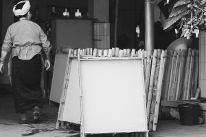 芒團村家家戶戶之間都鋪了水泥路,構紙便曬在路邊,還等不到完全干,就有人來買了。芒團村的傣族老人玉波告訴我,這幾年隨著旅游業(yè)的發(fā)展,帶動了芒團構紙產(chǎn)業(yè),構紙做出來就不操心銷路,但也面臨著競爭的壓力。