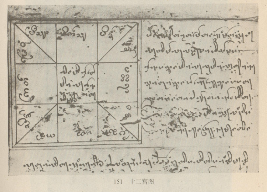 民族古文字欣賞:十二宮圖   傣哪文天文著作中保存的傣繃文黃道十二宮圖。圖分13格,周圍12格寫傣繃...