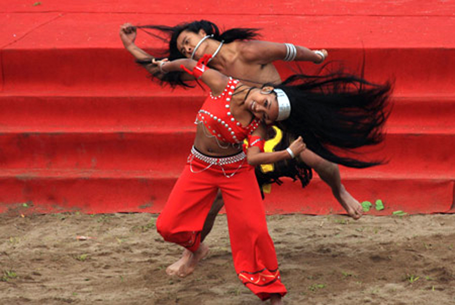 甩發舞:是廣泛流傳在佤族婦女中的一種舞蹈。《甩發舞》的產生年代很久,是屬佤族祖傳。佤族婦女酷愛長發,以長發為美,并從小習慣長發披肩。每當婦女在水竹槽下用水洗凈頭發后,就要低頭梳妝,甩發晾干、整型,后經人們整理提高而成為《甩發舞》。