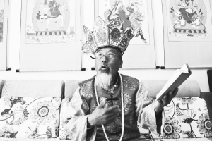 “東巴,在納西語里意為活佛或智者。”在玉龍納西族自治縣圖書館,李瑞山一邊講解,一邊向筆者展示館藏文物,這其中包括占卜紙牌畫、祭祀法杖和東巴經等。引起筆者注意的是一幅形似唐卡的卷軸畫,畫中的主人公竟是藏族詩人倉央嘉措。“用東巴文所寫的《卓伯所》一書里,記載了納西族與藏族、白族先民之間同宗共祖的兄弟關系,這點與木氏宗譜碑上所刻是一致的。所以,我們有關于藏族的記載并不奇怪,民族交融自古就有。”