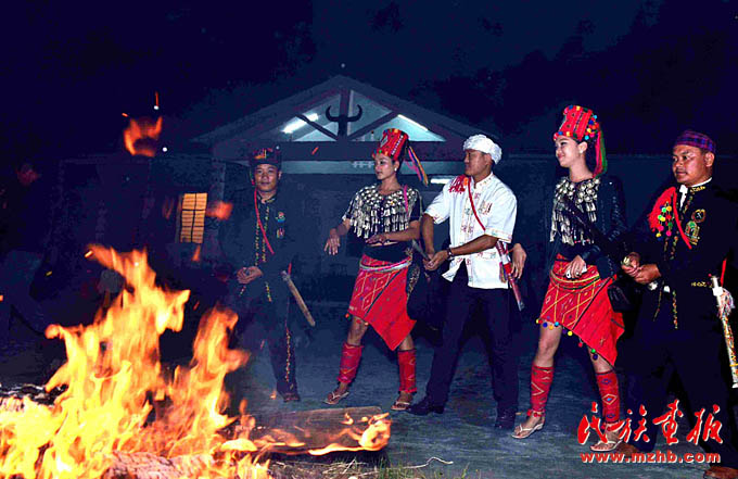 新村前,篝火旁,景頗群眾歡歌跳舞