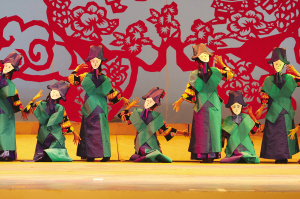 達斡爾族有語言沒有文字,然而在《神奇的達斡爾》演出現(xiàn)場,觀眾卻能夠感受到演員通過聲音和肢體語言記錄下來的活的文字,并且重新思考非物質(zhì)文化遺產(chǎn)的意義所在。近兩個小時的演出,觀眾對達斡爾族的非物質(zhì)文化遺產(chǎn)有了直觀的感受:達斡爾族搖籃,它的制式體現(xiàn)了達斡爾人對生命的思考和對自然的尊重;哈尼卡,達斡爾族傳統(tǒng)的剪紙藝術(shù),伴隨著金色的童年,充實著達斡爾人色彩斑斕的心靈世界;達斡爾族頸力賽,勞動之余一項普及性民間傳統(tǒng)體育競技運動,給人們平常的生活帶來無窮的樂趣——它們,都于2007年被列入第一批內(nèi)蒙古自治區(qū)非物質(zhì)文化遺產(chǎn)保護名錄。不僅如此,曲棍球(達斡爾語為“波依闊”,達斡爾族人喜愛的民間傳統(tǒng)體育項目)、魯日格勒(達斡爾族民間舞蹈,多表現(xiàn)狩獵生活和勞動場面)、烏春(達斡爾族特有的說唱藝術(shù))還被列入第一批國家級非物質(zhì)文化遺產(chǎn)保護名錄。