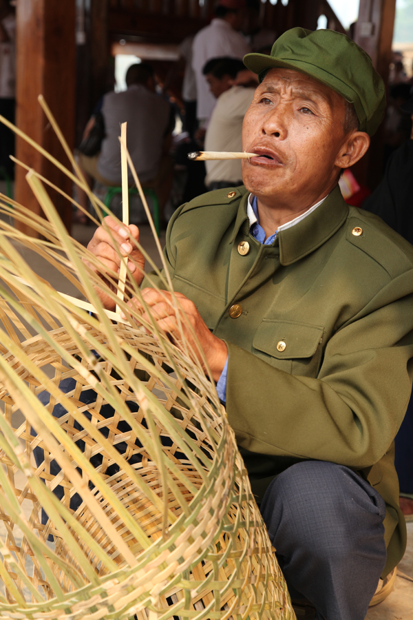 (1)竹編。布朗族居住地盛產(chǎn)竹子和藤篾,家庭用具、生產(chǎn)工具多偏愛竹制品。每一個(gè)布朗族成年男子都會(huì)編織各種竹器,如篾籮、飯盒、簸箕、篾席、背簍、篾桌、針線盒等。這些手工藝品多數(shù)自用,剩余的拿到壩區(qū)市場(chǎng)進(jìn)行交換。也有少數(shù)人以編制竹器為生。布朗族男女都會(huì)編制蓋房用的草排。