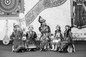薩爾組合成員和裕固族兒童一起錄制兒童學語歌