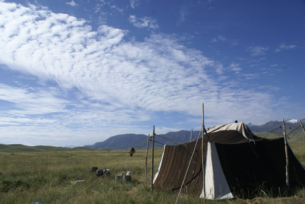 客人在進(jìn)帳篷前要把隨身攜帶的槍支、彈藥、牧鞭和生肉等取下交給主人代管。進(jìn)帳篷入座時(shí)要男左女右。當(dāng)主人請人用餐時(shí),客人不得隨意走動(dòng)。每逢虎、狗、鼠、蛇日,不得搬帳篷。
