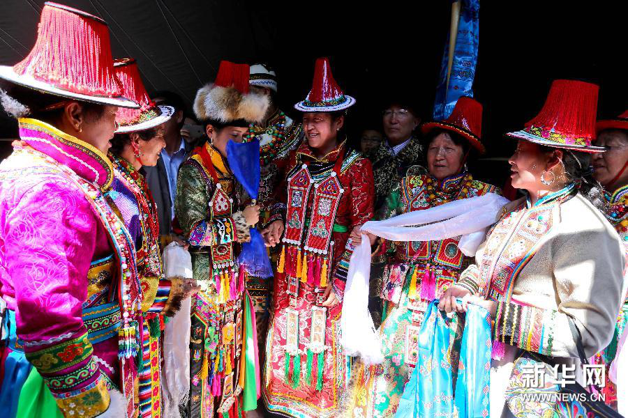 從那以后,裕固族姑娘出嫁就借用這頂“吐魯格排爾克”成親配對,不管春夏秋冬結婚,新娘提前三天就要戴在頭上。一直到現在,還保留著這個習俗。