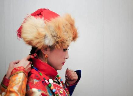 過了幾天,加爾江就準備結婚。未婚妻把兩張小狐皮縫成婚禮帽子,裕固話叫“吐魯格排爾克”,提前三天戴在頭上。