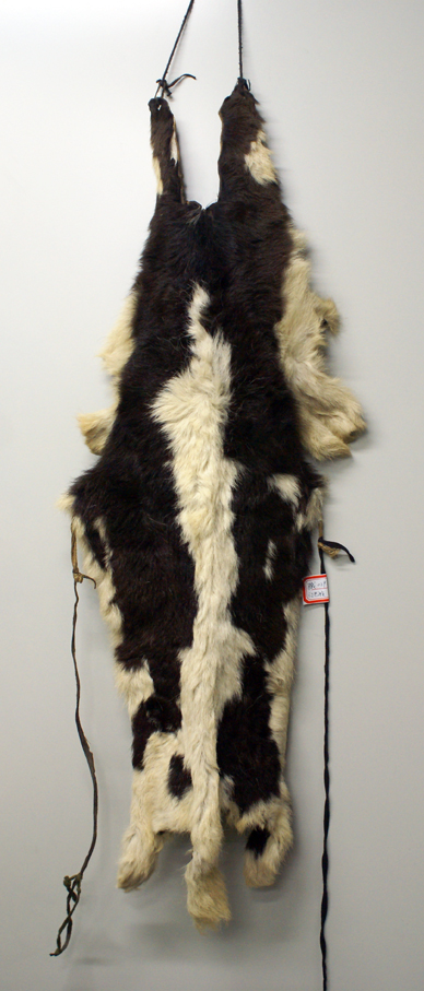 門隅南部地區的門巴族婦女,不分老少,袍服外披一張較為完整的小牛犢皮或巖羊皮,毛朝內、皮板朝外,牛皮頸部朝上,尾部朝下,略做加工、而且四肢皮伸向兩側。以此為美飾,吉慶節日或訪親會友,都要披一張新牛皮做盛裝。傳說,唐代文成公主進藏時背上披著皮子以避邪,后來此物賜給門隅婦女,后此物就成為門巴族婦女歷來沿用的裝束。