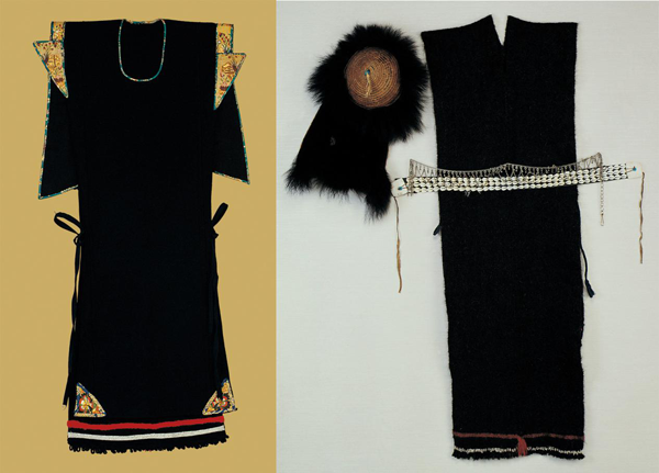 珞巴族的民族服飾已列入國家級非物質文化遺產名錄。圖為珞巴族民國時期貫頭式氌氌女服與男服,中央民族大學民族博物館館藏。