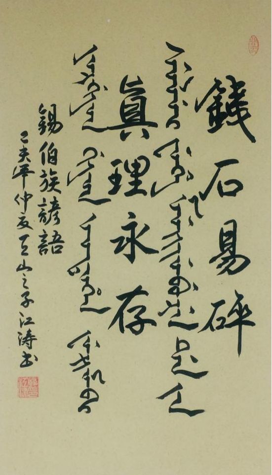 錫伯文書法:錢石易碎,真理永存